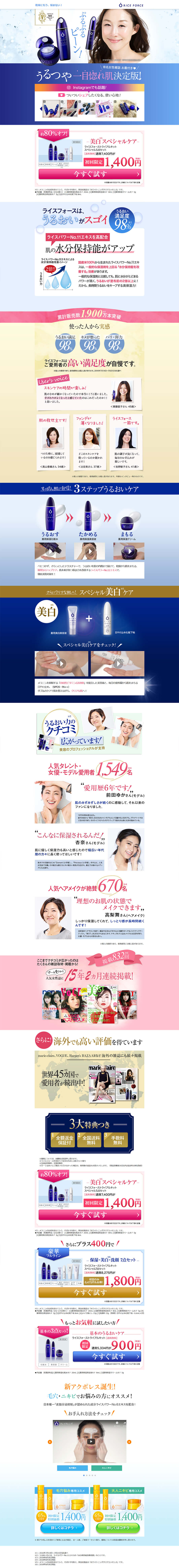 ファーストビューでは、 ・VoCE月間ランキング 化粧水部門 1位とさりげなく実績を掲載
