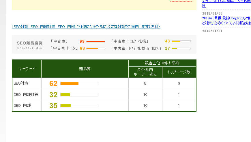 内部対策したいワードの難易度が高いほど、難しいようです。